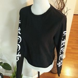 Cropped pullover, size medium, long sleeve with Creed in white letters