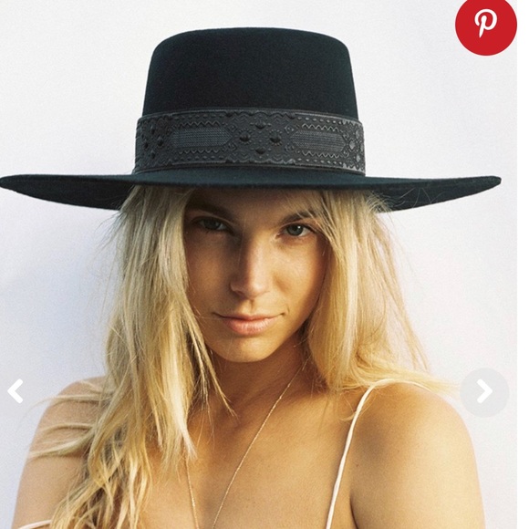 A chic, wide brimmed boater hat. Featuring a vintage patterned black band around! Never been worn with the tags still attached.