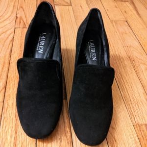 Lightly worn and in GREAT condition! Very professional and flattering with the perfect size heel for comfort! Beautiful black suede