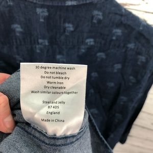 Steel & Jelly Mens Button Down Long Sleeve Palm Tree Cotton Shirt Size Large EUC. Great button down shirt. Smoke-free home. Excellent condition. Please let me know if you have any questions.
