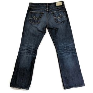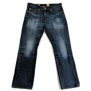 The Protégé straight leg jeans from AG Adriano Goldschmied, size 31x30. Very good used condition, no stains, rips or holes. There is a wear spot from a wallet on one back pocket.