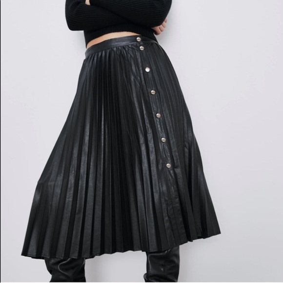 ZARA Faux Leather Pleated Mid Skirt