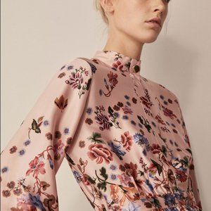 Massimo Dutti Floral Print dress with Gold Button detail