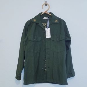 Vintage army jacket embroidered with gold leopard and flower details on collar