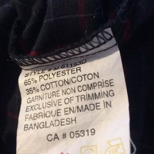 Navy blue plaid shirt with red and light blue stripes. EUC