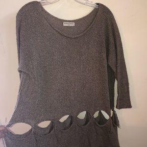 Fun Sweater with cutouts and fringe * taupe * scoop neck * side slits * 3/4 sleeve * flowy