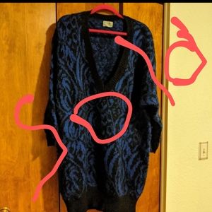 VINTAGE BENETTON V-Neck Sweater, EUC, Black and Blue, longsleeve, long length.