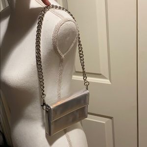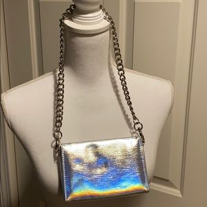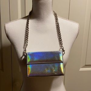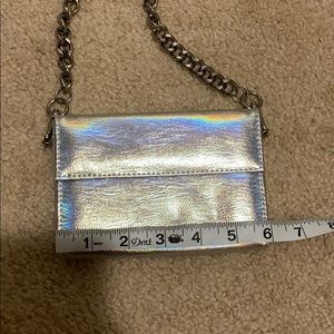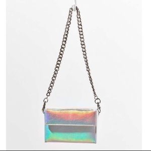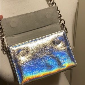 Super cute hologram/holographic mini chain purse from urban outfitters. It’s an excellent accessory (yes it’s small) but less is more and mini accessories are trending right now!!