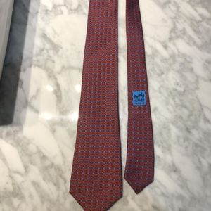 Selling a red and blue and brown Hermès tie with a beautiful design in excellent condition