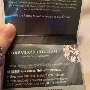Beautiful 2 ct center round moissanite brilliant Charles and colvard with 1 ct side stones on each side of the shank. Beautiful piece!! Comes with Charles and colvard paperwork😊