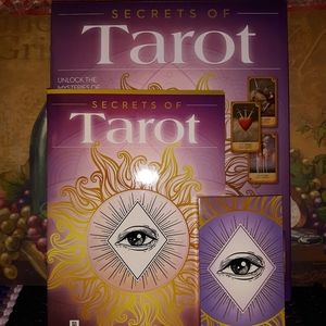 ☯️♥️LAST SET♥️~Secrets Of The Tarot Box Set Is An Ideal Introduction To The Tarot Cards☯️This Boxed Set Includes A Beautiful 78 Card Deck And A 32 Page Thin Paperback Book☯️The Beautiful Illustrated Paperback Book Explains Each Card Meanings, Different Spread Layouts And More☯️Learn What's In The Cards For You And Entertain Family And Friends☯️Includes 1~32 Page Book And 1~78 Card Deck ☯️Size~8.40"(W)10.30"(H)1.40"(D)☯️IMPORTED☯️