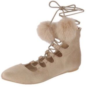 Teddy Pointy Toe Corset Pom Pom Lace Leg Wrap Flats