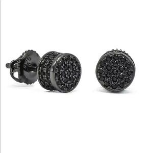 Men Black Plated 925 Sterling Silver Round Simulated Diamond Stones Screw Back Stud Earrings
