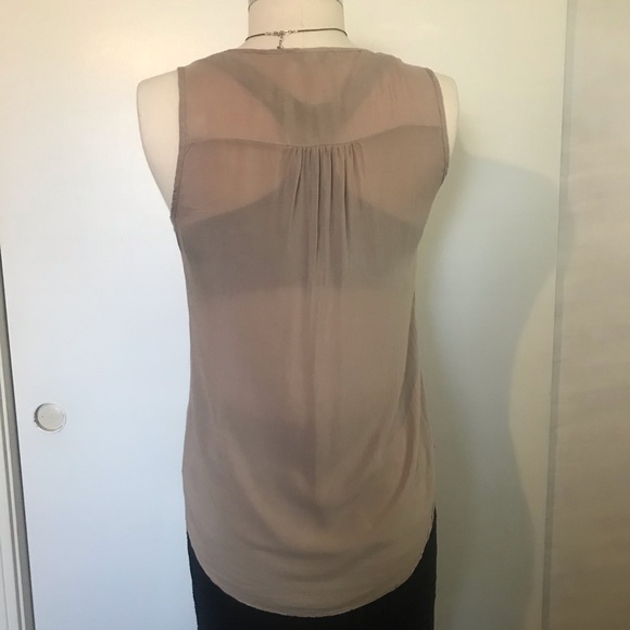 Very light material semi transparent tank top with two front pockets.