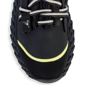 Known for his perfectly crafted urban cool sneakers, Giuseppe Zanotti creates street-wear pieces that are the height of sports luxury. These black leather sneakers feature a lace-up front fastening, deconstructed zip design and a spiny rubber outsole.