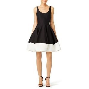 Subtle sexy feels. To create a voluminous look, this black and white Halston Heritage contour tulip skirt and plunging neckline becomes a show stopper.