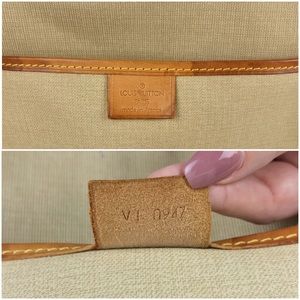 Monogram canvas with vachetta leather flat handles, trim and piping with brass hardware. The full double zip-around closure opens to a washable beige interior lining with a large patch pocket.