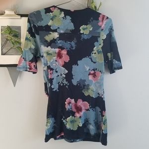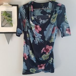 Anthropologie Deletta Night Petals Short Sleeve Draped Top M