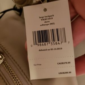 Kate Spade large backpack. Color is soft taupe. Love the bag but my laptop doesn't fit. Perfect color for spring. Offers considered.