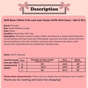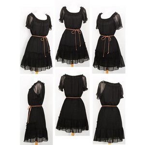 Black Sheer Chiffon Frill Ruffle Shift Dress +BELT