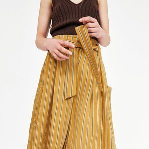 Zara Voluminous Linen Blend Striped Skirt with Bow Detail