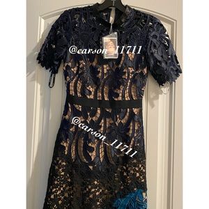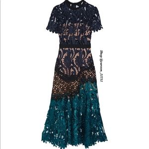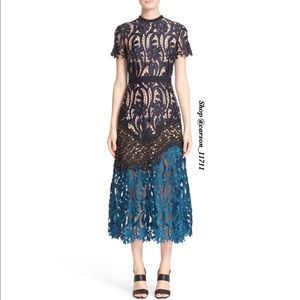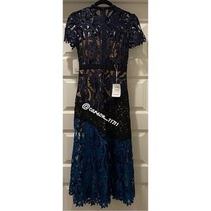 NWT Self Portrait Prairie Midi Dress Navy/Teal