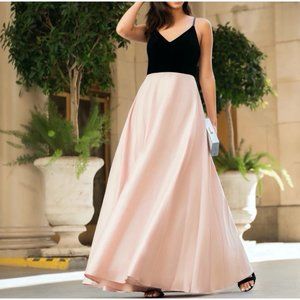 Ella Gown Black Velvet Blush Satin Maxi Dress Prom