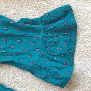 Beautiful turquoise color with a simple print. Long sleeves and open wrist just flows