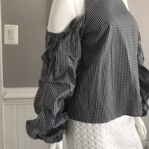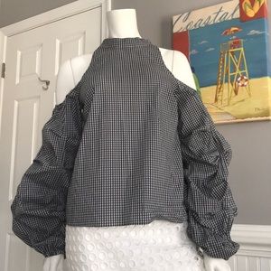 New w/o tag! Super cute, festive blouse by Sunday in Brooklyn bought @ Anthropologie. Looks just as good with denim as with festive outfits for the holidays, or date night. Black/White Gingham, features a high neck with peek a boo shoulders. Wrists have an elastic so you can wear the arms up or down. The arms themselves are very pretty & well made. Very detailed! Pure Cotton. New w/o Tag, never worn & flawless, size M.