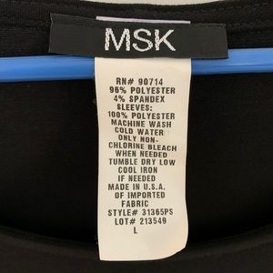 Black dress with flowing bell sleeves. Only worn twice. Hits about low-mid thigh on 5’10” person. Flattering and comfortable. Great with heels or boots.