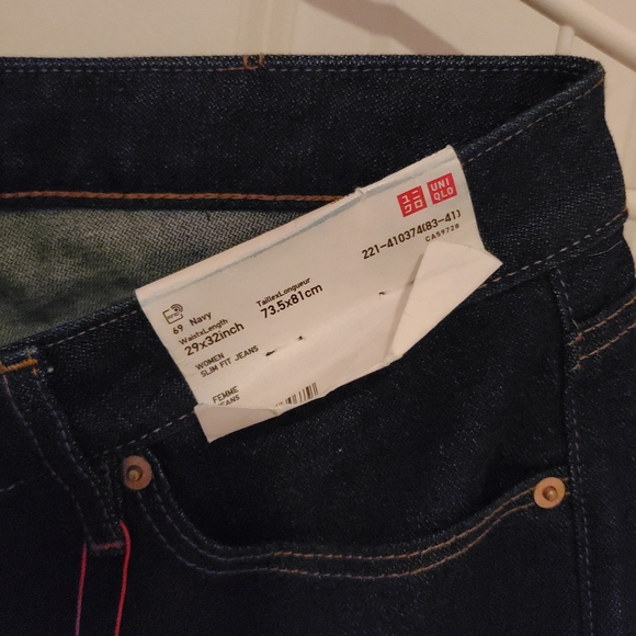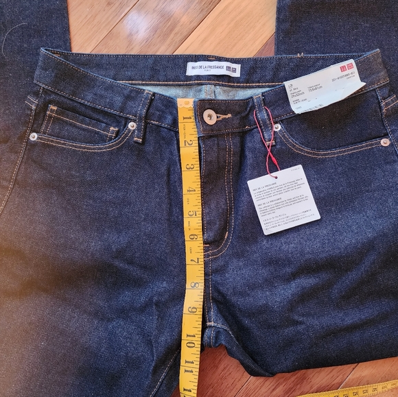 BNWT 100% cotton jeans from the Uniqlo x Ines de la Fressange collection. 29x32, dark blue ("navy") slim cut. Since these are 100% cotton they have very little to no stretch. Tags are attached but bent.