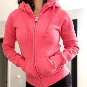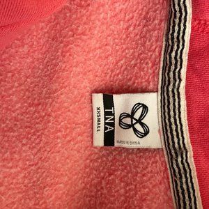 Aritzia TNA Hoodie in a beautiful salmon pink colour. Classic full zipper hoodie with draw string hood