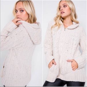 💕Ultra soft gorgeous sweater (cardigan) has knit faux suede, zip front closure, hoodie and side pockets. Stretchy!