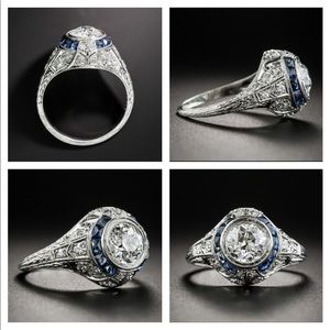 Back in stock. Stunning Art Deco ring. Cubic Zirconia center stone with pavé detail and lab simulated sapphire accents. Set in 925 sterling silver. This ring is sparkly and beautiful. I wear this ring frequently and it is comfortable on the finger and it always gets compliments. Limited size and quantities available.