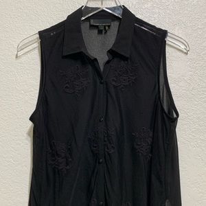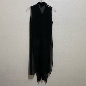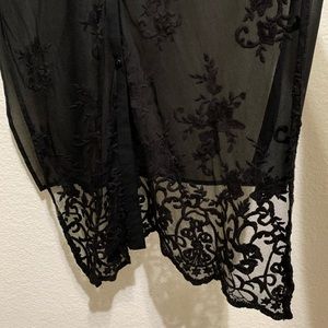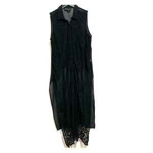 Button front long lace tunic vest in black