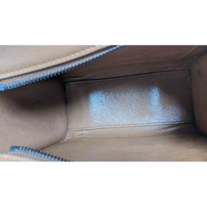 This authentic Celine Tri-Colored Nano Luggage is in good pre-loved condition. There is a light stain above the front zipper and on lower back. Pen mark in interior.
