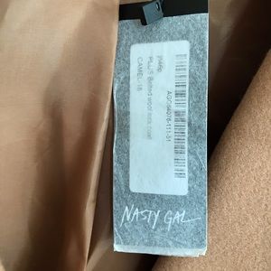 Super warm coat, brand new never worn!! FAUX wool and features a double breasted, button-down closures, longline, relaxed silhouette, belt with rectangle buckle closure at waist, V-neckline, notched lapels, and straps with buckle closures at cuffs.