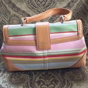 Perfect for spring-summer! Excellent condition with all the hang tags. Fabric with leather trim. Little to no signs of wear. Multi-colors.