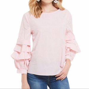 Sanctuary Delphine Ruffle sleeve top in size XS. Adorable pink pinstripe and ruffle sleeve detail. 100% cotton.