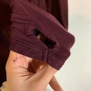 Some loose threads around one thumbhole, no other issues. Very very oversized.
