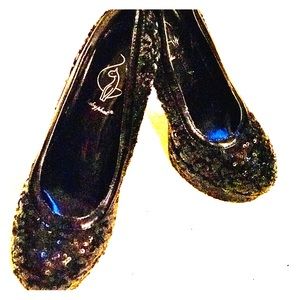 Size 6M black platform pumps, black sequined. Worn once. 1 1/4 inch platform and 5 inch stiletto heel.