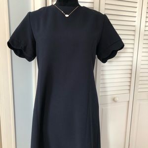Just been dry cleaned, without belt, scalloped ham of the dress and sleeves, simple and elegant navy dress, zipper on the back.