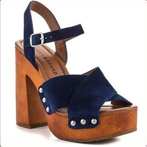 Navy Blue Suede Open Toe Platform Heel Sandal