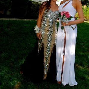 Jovani dress, detailed with sequins. Very flattering, tailored to fit 5’3” with 3 inch heels (end of dress right above the ground - touching a little). Will post more pictures upon request. WORN ONCE 🌟