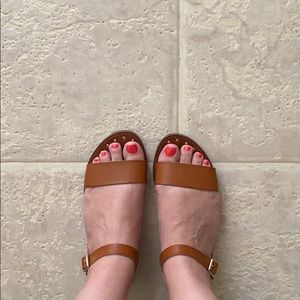 Steve Madden flat darker tan sandals. Very little wear and tear with a lot of life still left! Perfect for the upcoming Spring!