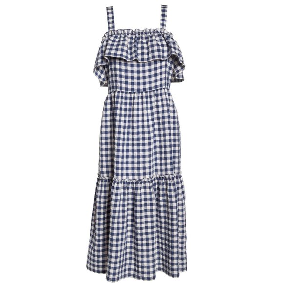 First Monday 100% Cotton Gingham Ruffle Midi Dress