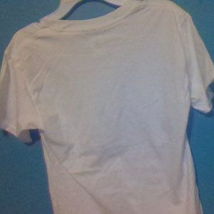 White t shirt with cut snips at the bottom