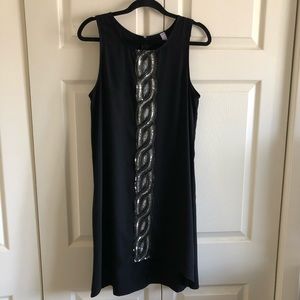 Simple black dress from Francesca’s with stylish sequin pattern down the front. The tag is Alya and the size is medium. Only worn once to a wedding but could be worn for work, date night, or any event.