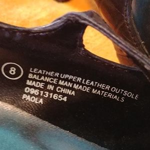 Black leather spiked heels, pattern is alligator skin, heels are 3", size 8, pointy with dainty strap and buckle. My feet got fat, so I have to give these up. I think I wore them once. Bottom in great shape. One heel needs a spot of glue, easy fix.