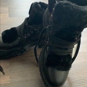 Beautiful trendy NWT black leather boots with fur